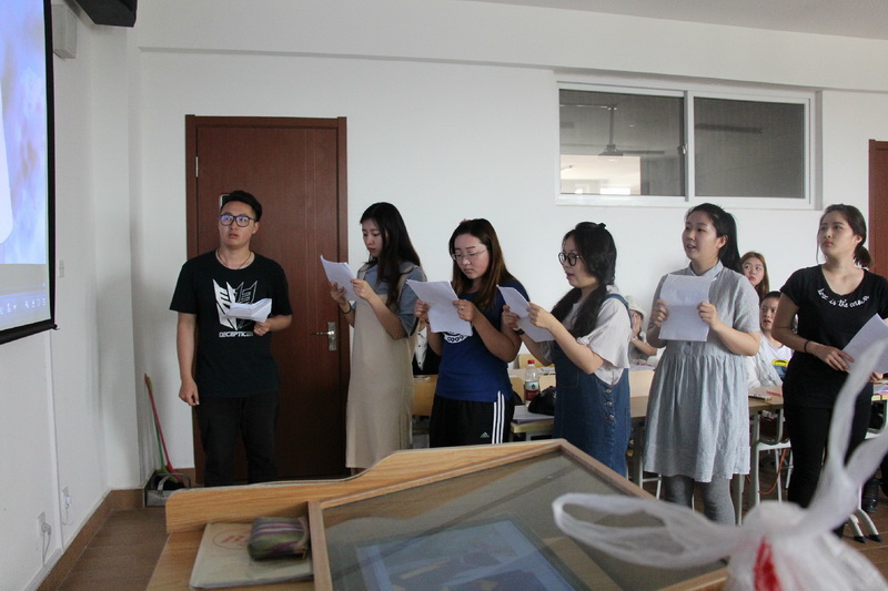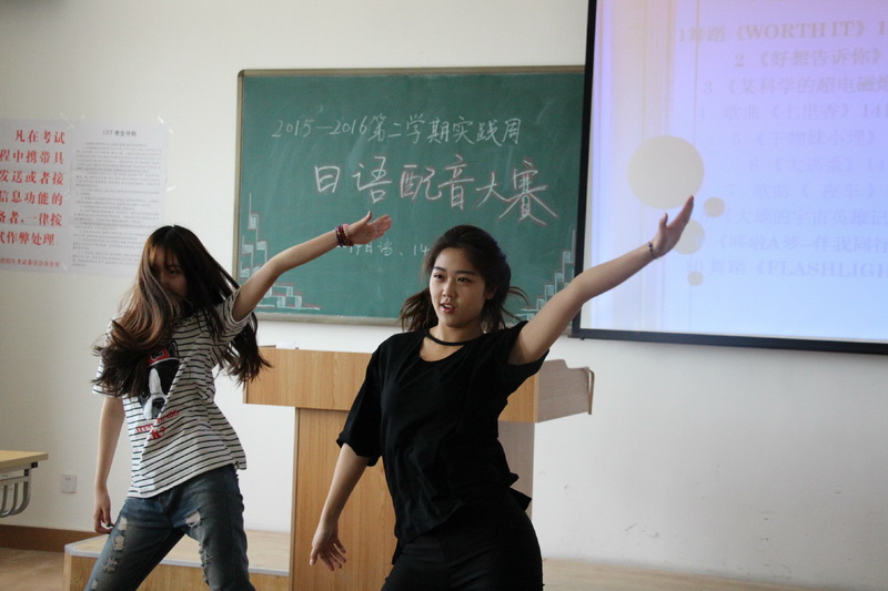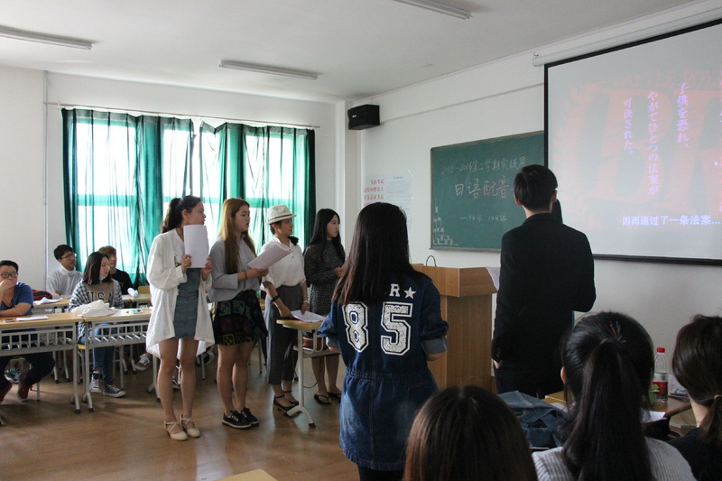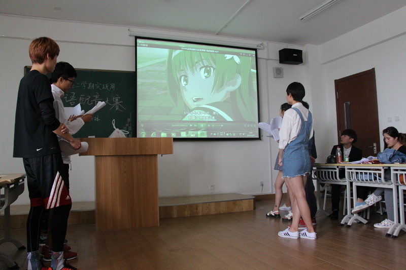 由日语教师现场打分,在每个班级分别选出二组比较好的小组,参加第二天的配音比赛。
