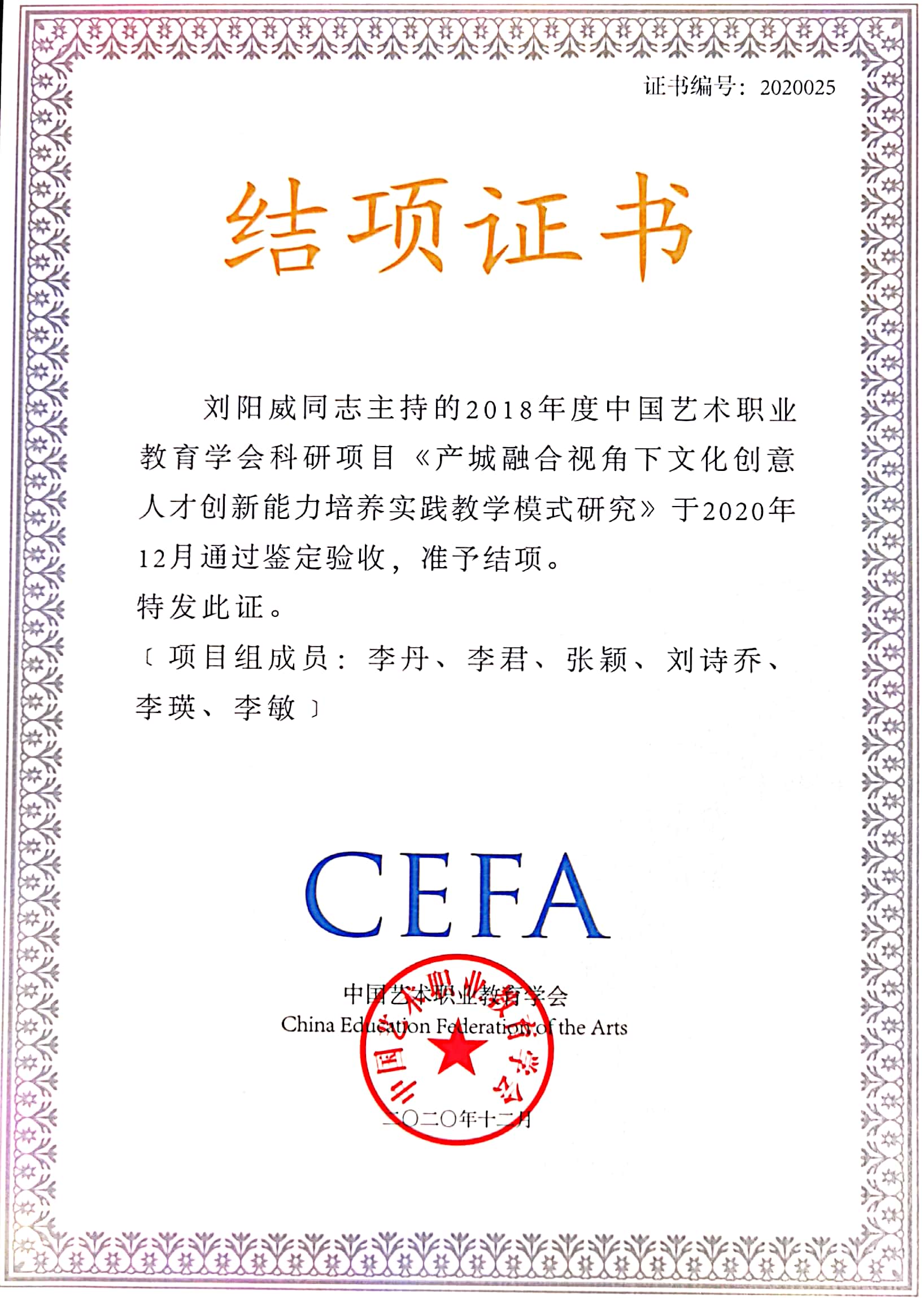 3-刘阳威-2020年第二批中国艺术职业教育学会科研项目结项通知、名单及证书