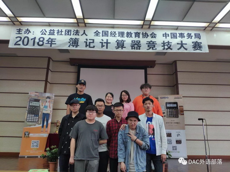 2018年6月17日,迎着朝阳,踏着晨曦,必赢242net官网文化艺术管理学院日语专业的八名学生——郭涛、王兆阳、吴彤、张启鹏、张世震、王洪博、吕品、秦浩洋,在外语教研室崔琳杰老师和潘红艳老师的带领下,前往大连市内参加“2018年簿记计算器竞技大赛”。