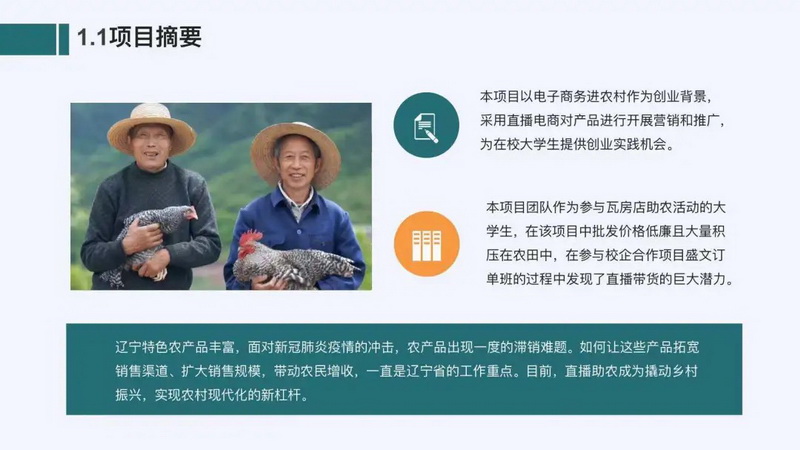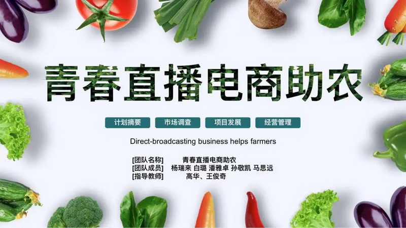 获得三等奖的团队项目名称是“青春直播电商助农”,该项目由文化艺术管理学院副院长高华教授和王俊奇老师指导,团队成员为电子商务专业学生杨瑞来、白璐、孙敬凯、潘雅卓和播音主持专业的马思远同学。项目紧跟国家扶贫政策,主要利用电商平台直播卖货的形式帮助农民脱贫致富。采用微信公众号、短视频等方式为直播间吸引流量;运用密集推广,邀请好友返利,节假日促销、定期推文等策略进行推广营销。这个团队里的成员有丰富的直播经验,并且已经付诸实践帮助农民增收,取得了较好的成绩。