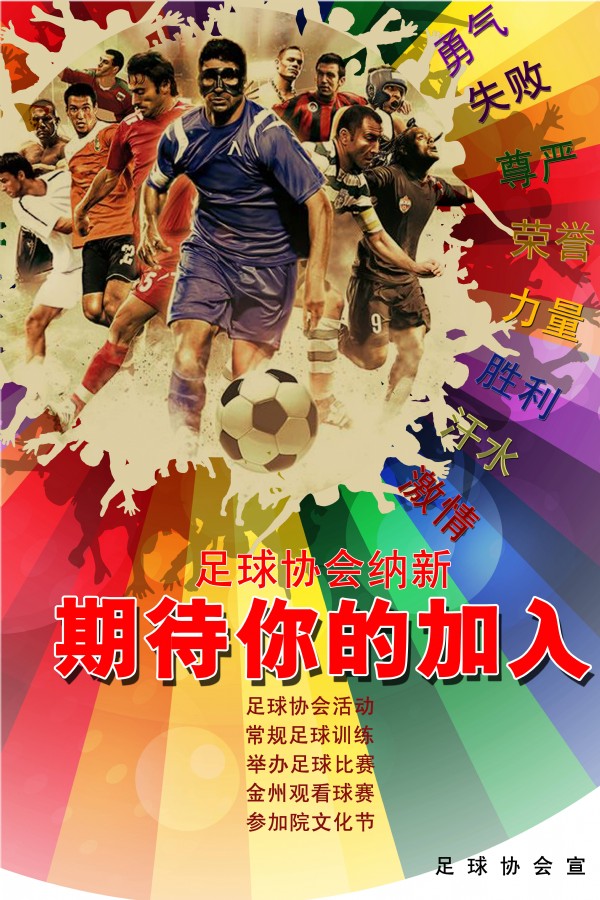 社团宗旨:丰富同学们的课余文化生活,提高我院学生的综合素质让更多的人认识足球、了解足球、热爱足球、投身足球、发展足球、普及足球。我们的口号是:踢出激情,活出精彩。