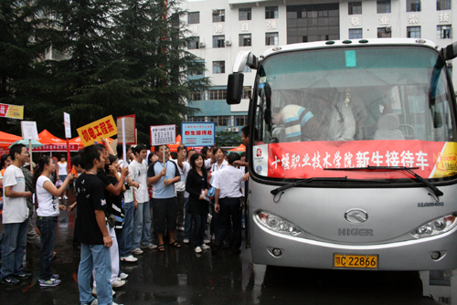 迎新车队刚一到达,迎新的同学都热情上前迎接