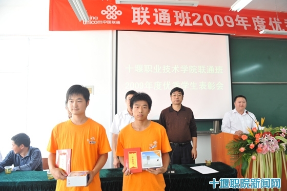 9月17日下午,联通公司十堰分公司与学院共同举行十堰职院“联通班”优秀学生表彰大会,对10名优秀学生进行了表彰。联通公司十堰分公司副总经理姚楚平、beat365副院长张德新、唐大超等领导为优秀学生颁奖并讲话。校企双方相关部门负责人和全体“联通班”师生参加了大会。