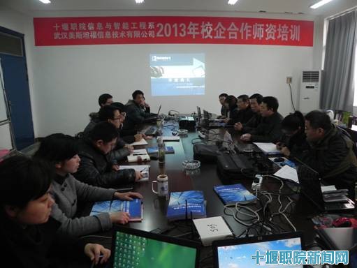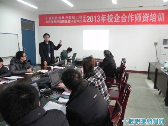 (通讯员 吴佳湄)1月14日上午,十堰职院信息与智能工程系与武汉美斯坦福信息技术有限公司2013年校企合作师资培训开班仪式,在信智系会议室举行,院人事处处长施复兴、武汉美斯坦福信息技术有限公司刘海升主任和专业教师、信智系全体教师参加了开班仪式,会议由系主任夏德洲主持。
