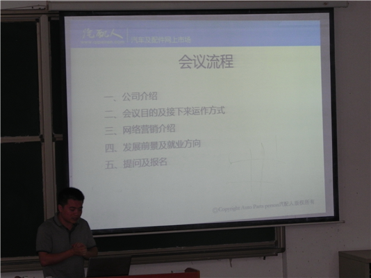 十堰亿脉科技有限公司的负责任人冯建对此次招聘会的主要流程进行说明,包括公司介绍、会议目的及运作方式、网络营销介绍、学生的就业方向及发展前景、提问和报名等内容。同时,对工作室成立后学生应具备的能力、工作的具体内容等进行了详尽细致的说明,介绍了网络营销的营销模式,针对目前的互联网公司人才缺口大,着重分析了学生在互联网上就业及创业前景宽广,并告诫在校学生在残酷的职场竞争中,要具备丰富的工作经验和较强的学习能力。十堰亿脉科技有限公司成立于2005年,是十堰市本土的互联网企业,此次拟计划在信智系招收一部分有能力和有意愿的学生成立学生创新工作室,并给这部分学生将提供全方位的学习环境。