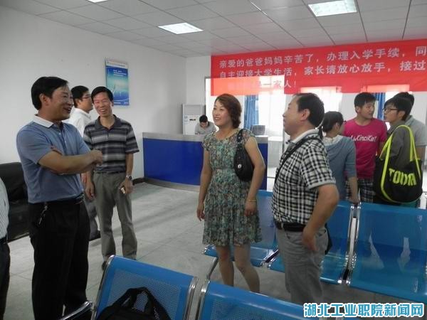 魏院长一行察看了校企共建专业的搬迁情况,与报到新生的家长进行了亲切的交流,并听取了该系主任夏德洲、书记莫足琴、校企合作企业刘主任关于校企共建、教育教学融合、学生管理及系级文化融合等方面工作的汇报。