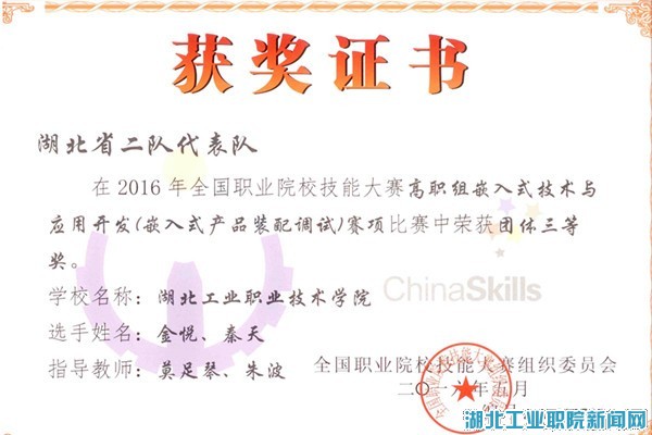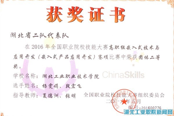 新闻网讯(通讯员 彭远)5月8日,经过长达8个小时紧张而持久的竞赛,在全国150多个参赛团队激烈角逐中,2016年全国职业院校技能大赛高职组“嵌入式技术与应用开发”赛项在天津落下帷幕,beat365信息与智能工程系物联网应用技术专业杨雯娟、嵌入式技术与应用专业段宏飞两名同学获得“嵌入式产品应用开发”团体二等奖,物联网应用技术专业金悦、秦天两名同学获得“嵌入式产品装配调试”团体三等奖,成为湖北在该赛项本年度获奖级别最高、获奖项目全覆盖的唯一参赛院校。