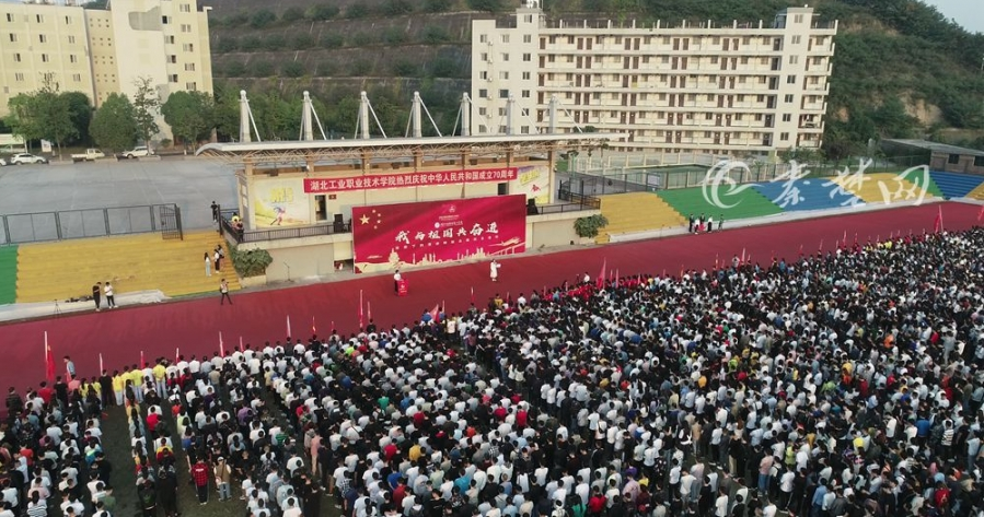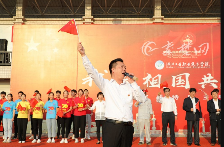 随后,诗朗诵《大国重器》、重温入团誓词、唱团歌等环节一一进行,现场5000余名师生共同合唱起《我和我的祖国》,嘹亮的歌声在湖工职院上空久久回荡,不禁让人热血沸腾。