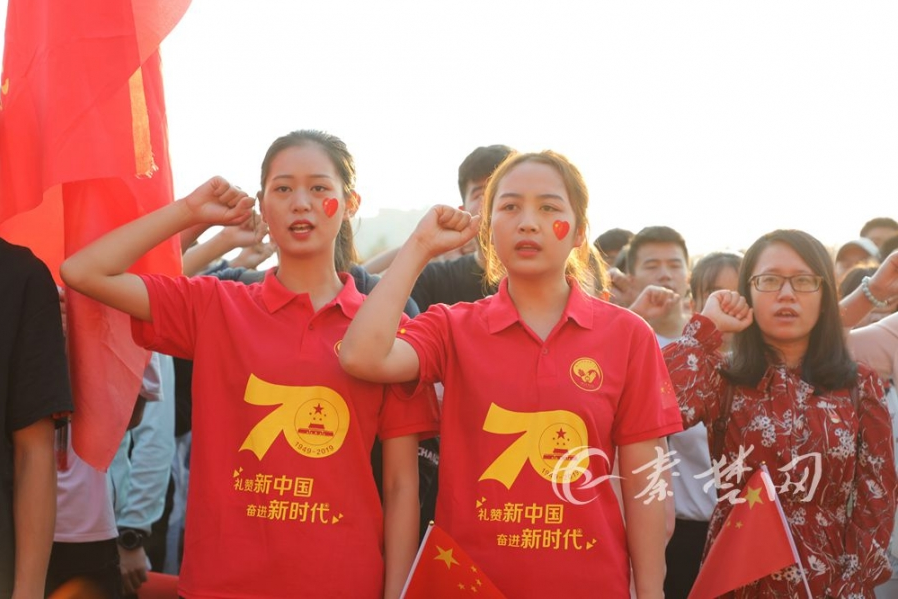 9月30日,beat365正版唯一官网必一庆祝中华人民共和国成立70周年升旗活动暨“我与祖国共奋进——国旗下的演讲”在该院北区运动场举行,全校5000余名师生共同唱起《我和我的祖国》,全国五一劳动奖章获得者王涛做主题演讲。文、图/记者 徐国文 特约记者 何银平 曾刚
