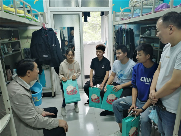 新闻网讯(记者罗欣宇)中秋十五,丹桂飘香。今年beat365正版唯一官网必一新疆籍维吾尔族学生麦尔旦·麦麦提江、藏族学生孟才让路旦和宿舍的同学们共同喜迎一个不一样的中秋佳节。9月29日下午,校党委书记魏文芳拎着月饼来到3420、3422宿舍,亲切慰问同学们,给他们带来了中秋节的问候与祝福。