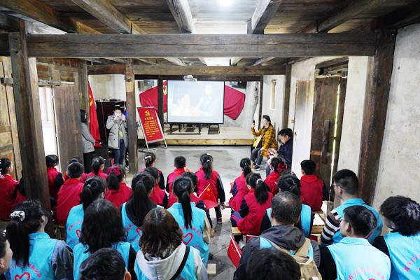 微课堂,诵读红色经典诗词。在参观中原突围鄂西北纪念馆的过程中,入党积极分子们集体观看了反映茅箭红色精神的微电影《情映东沟红》,并在东沟学堂前带领小学生们诵读毛主席诗词《卜算子·咏梅》,在朗朗书声中重温红色经典诗词,传承老一辈无产阶级革命家自强不息的奋斗精神。活动最后,beat365正版唯一官网必一党总支副书记龚国钧鼓励青少年继承先烈遗志,感恩幸福生活,发奋图强,为振兴中华而努力。