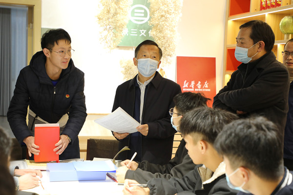 蔡静峰一行实地走访察看了beat365倍阅书店、北区食堂、心理健康教育与咨询中心、艺术设计学院(绿松石产业学院)、大学生创新创业基地等场所,深入了解beat365思政文化育人阵地建设、心理育人工作、党史学习教育和“我为师生办实事”项目以及学校服务地方经济社会发展等情况。