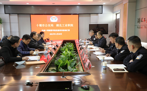 在行政中心302会议室举行的座谈会上,魏文芳代表学校对董奇峰一行来校调研指导表示欢迎和感谢,介绍了学校基本情况和“五化同步”发展战略。副校长叶波主持座谈会并汇报了市公安局与学校共建十堰辅警学院技能培训基地工作开展情况。保卫处处长、武装部部长胡现敏作了学校安全稳定工作的专题汇报。与会的市、区公安局有关部门负责人就进一步深化警校共建、警校合作等工作提出了许多好的意见和建议。