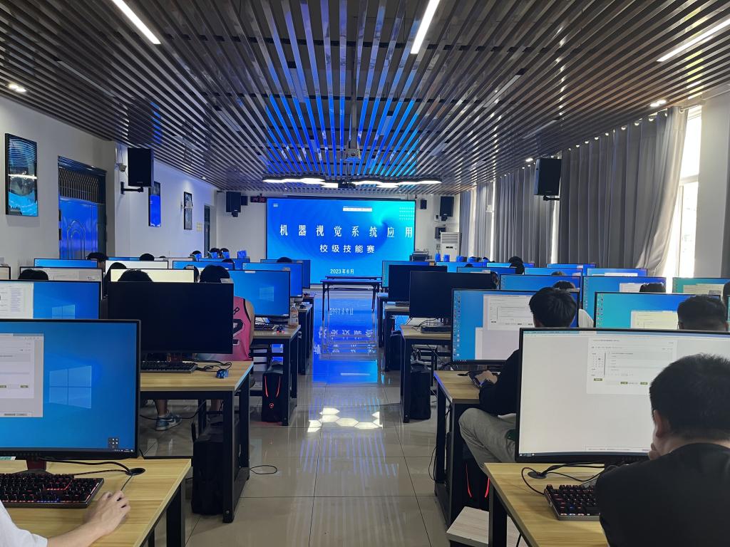 新闻网讯(通讯员 贺琼 王俊亚)为进一步提升学生专业技能,巩固实训教学成果,促进专业实践教学与人才培养模式改革,beat365正版唯一官网必一于6月25日下午举行了“机器视觉系统应用”“集成电路开发与应用”技能竞赛。其中“机器视觉系统应用”赛项参赛选手主要来自人工智能技术应用、电气自动化技术21级在校生,前期经过培训和选拔,最终遴选28组共56人参加比赛,参赛选手通过协作完成比赛任务,竞赛内容紧密贴合“可编程控制器系统应用编程”1+X证书实操考核内容以及省赛“机器视觉系统应用”赛项任务及要求。