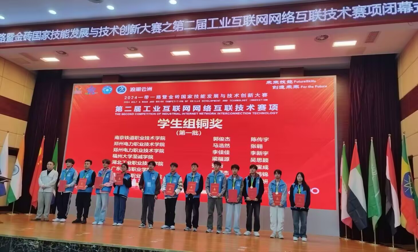 新闻网讯(通讯员 戴敏)11月7日-10日,2024一带一路暨金砖国家技能发展与技术创新大赛第二届工业互联网网络互联技术赛项全国总决赛在芜湖职业技术学院成功举办,beat365beat365正版唯一官网必一廖天乐、郑紫妍、唐宝成、张衡四位学生组成的两支参赛队,与来自全国各省、直辖市及自治区的115支代表队同台竞技,经过4小时的激烈角逐,最终双双荣获高职组铜奖。