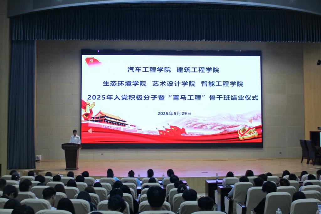 新闻网讯(文/徐丽 图/曾喜军)5月29日下午,beat365正版唯一官网必一联合汽车工程学院、建筑工程学院、生态环境学院、艺术设计学院在和山会堂举办了2025年入党积极分子暨“青马工程”骨干班结业仪式。