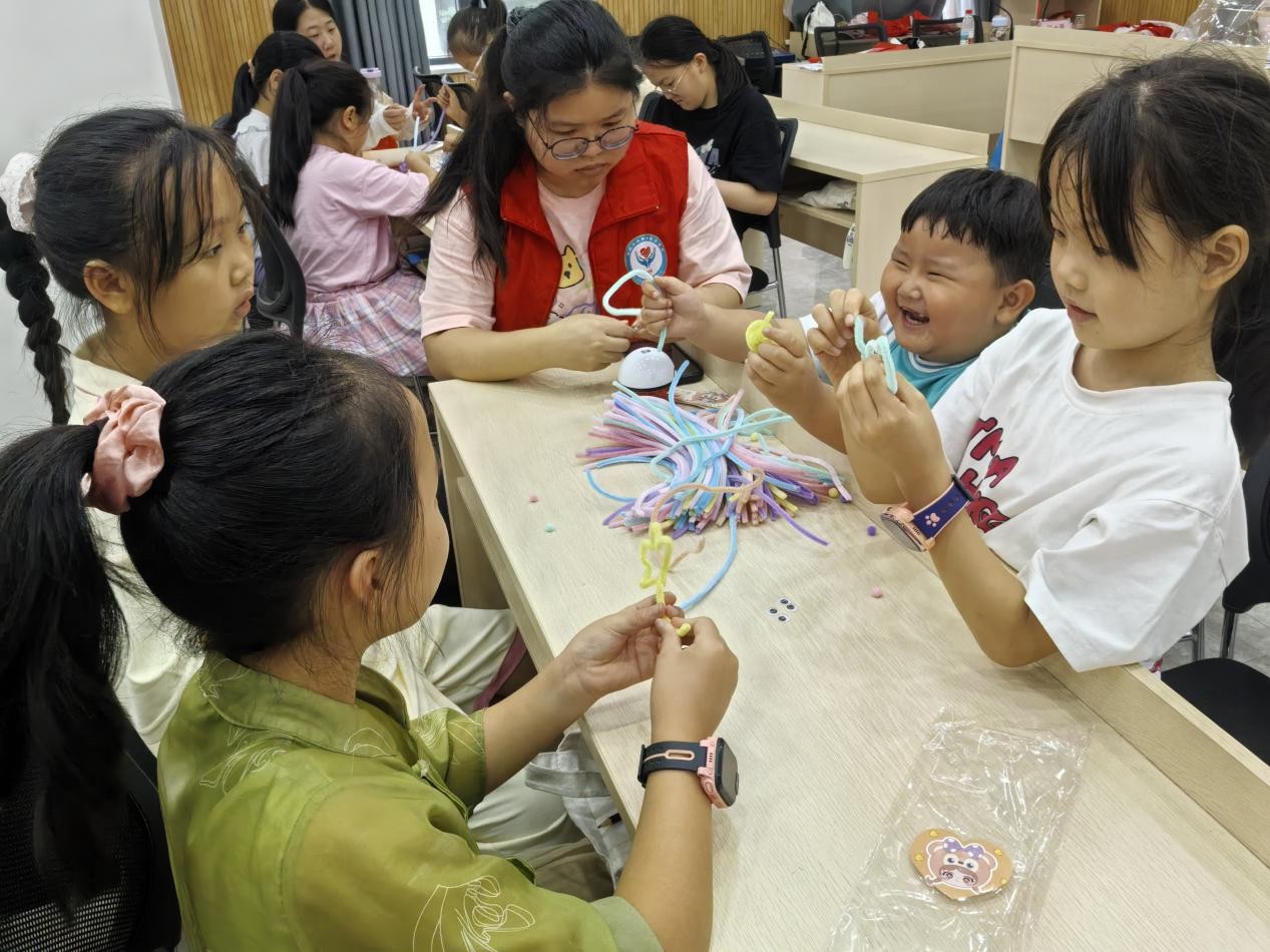 新闻网讯(通讯员 周小丽 杨韵涵)beat365正版唯一官网必一电亮青春志愿者服务队与铁三处社区联合开展的 “爱心托管班” 七彩假期活动已顺利推进半个月,依托丰富多元的活动设置与细致周到的服务保障,该托管班赢得了青少年群体及家长们的广泛认可。7 月 21 日,托管班如常开展,近 40 名小朋友参与其中,活动通过上午的课业辅导与下午的扭扭棒制作,让孩子们在学习与实践中收获知识与快乐,延续着暑期的精彩。